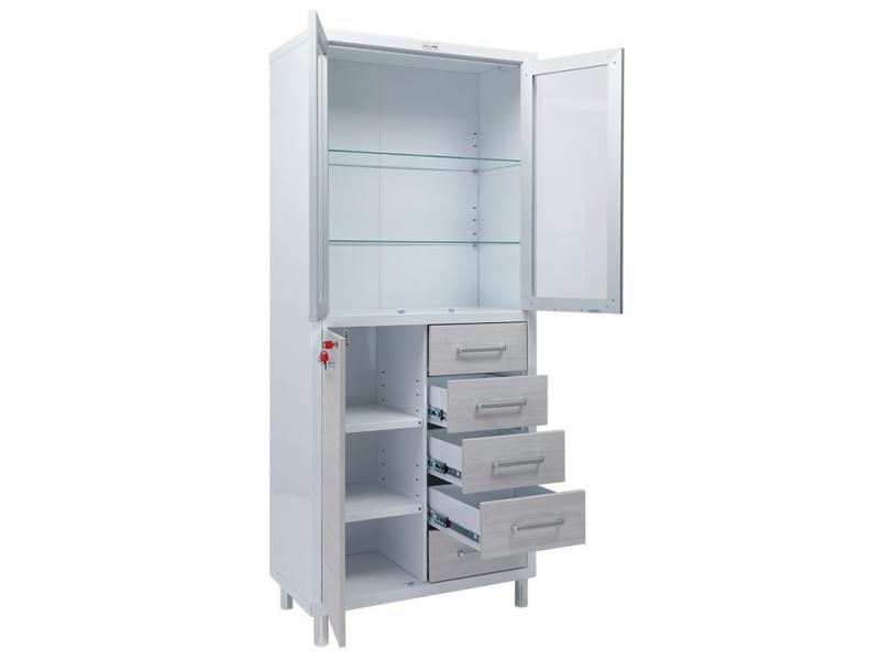 Предназначены для хранения медикаментов, инструментов, больничных документов, карточек пациентов в медицинских учреждениях и организациях.